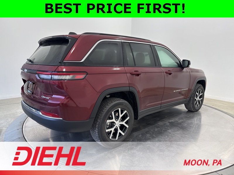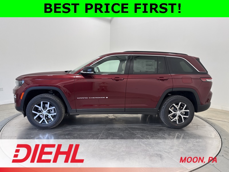Factory MSRP: $51,005Velvet Red Pearlcoat 2025 Jeep Grand Cherokee Limited4WD 8-Speed Automatic 3.6L V6 24V VVT4WD.19/26 City/Highway MPG Price includes: $1750 - 2025 National Retail Bonus Cash . Exp. 11/03/2025