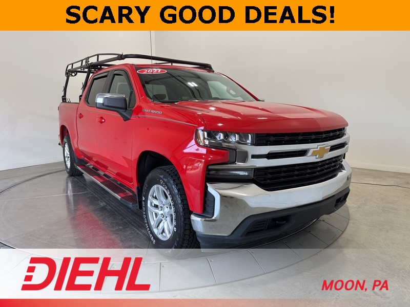 This 2021 Chevrolet Silverado 1500 LT Crew Cab isn't just a truck...its a lifestyle upgrade with a turbocharged attitude. Finished in Red Hot and built for those who think average is a dirty word, this Silverado pairs rugged power with refined comfort. Its 2.7L Turbo engine and 8-speed automatic transmission deliver serious muscle with surprising efficiency, while 4WD and a locking rear differential keep you in control when the road...or trail...gets interesting.Slip inside the spacious Crew Cab and you'll find premium touches everywhere. Heated front seats, a heated steering wheel, leather-wrapped controls, and dual-zone air conditioning make every drive feel like first class. The Chevrolet Infotainment System with Bluetooth, Wi-Fi Hotspot, and color driver display keeps you connected and in command. Add in smart trailering tech, LED cargo lighting, and chrome accents, and you've got a truck that looks as sharp as it works.And here's where it gets even better...this Silverado is Diversified Certified, offering the same trusted coverage as Stellantis Certified Go. That means its passed a comprehensive inspection and comes backed by a 3-Month/3,000-Mile Extended Care Premium Limited Warranty for extra confidence on every mile.So if you've been searching for a pickup that's built tough, loaded with comfort, and backed by real warranty protection, your hunt ends here. Swing by Diehl of Moon and claim this Certified Silverado before its gone. Trucks like this don't wait around and neither should you.