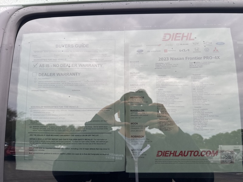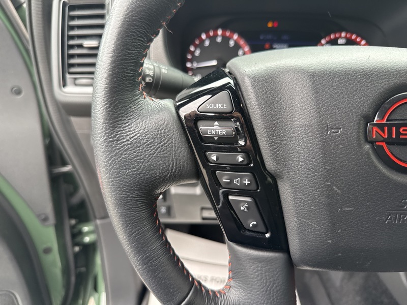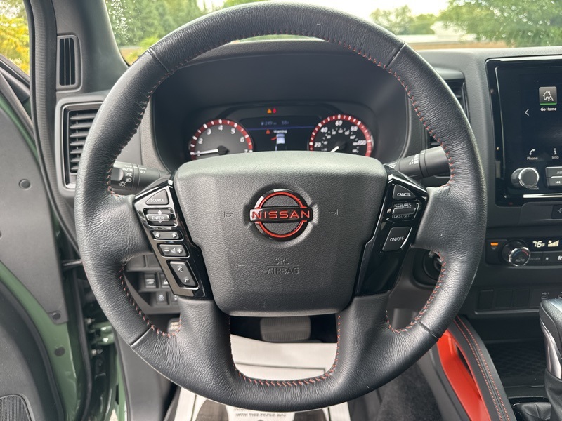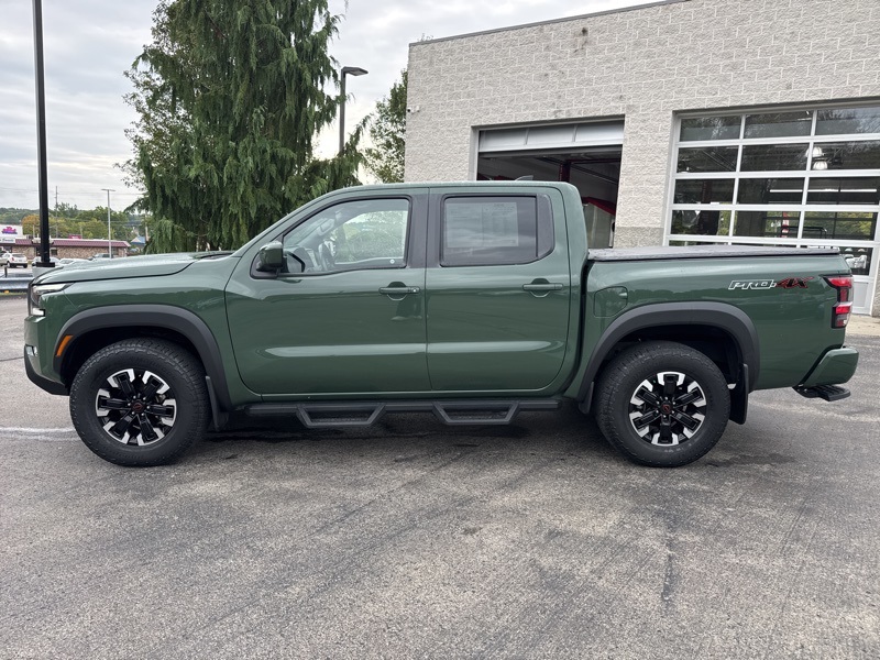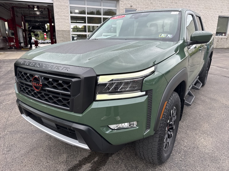 **NAVIGATION/NAV/GPS**, **BLUETOOTH HANDS FREE**, **BACK UP CAMERA**, **4X4**, **KEYLESS START**, *APPLE CARPLAY*, 4WD. Priced below KBB Fair Purchase Price!Tactical Green Metallic 2023 Nissan Frontier PRO-4X 4D Crew Cab 4WD 3.8L DI DOHC 24V V6 9-Speed Automatic Tow Package, 4WD, 17" Alloy Wheels, 3.692 Axle Ratio, 4-Wheel Disc Brakes, 6 Speakers, ABS brakes, Air Conditioning, Alloy wheels, AM/FM radio: SiriusXM, Anti-whiplash front head restraints, Automatic temperature control, Brake assist, Bumpers: body-color, Delay-off headlights, Driver door bin, Driver vanity mirror, Drop-In Bed Liner & Bumper Step, Dual front impact airbags, Dual front side impact airbags, Electronic Stability Control, Electronic Tailgate Lock, Emergency communication system: NissanConnect Services, Front anti-roll bar, Front Bucket Seats, Front Center Armrest, Front dual zone A/C, Front fog lights, Front reading lights, Front wheel independent suspension, Fully automatic headlights, Hood Graphics, Illuminated entry, Illuminated Kick Plates, Knee airbag, Leather Shift Knob, Low tire pressure warning, Navigation system: Nissan Navigation with Voice Recognition, Occupant sensing airbag, Off-Road Style Step Rails, Overhead airbag, Overhead console, Panic alarm, Passenger door bin, Passenger vanity mirror, Power door mirrors, Power driver seat, Power steering, Power windows, PRO Embroidered Premium Cloth Seat Trim, PRO-4X Carpeted Floor Mats, PRO-4X Mud Flaps, Radio data system, Radio: SXM/AM/FM/AUX/USB Audio System w/6 Speakers, Rear anti-roll bar, Rear seat center armrest, Rear step bumper, Remote keyless entry, Security system, Speed control, Speed-sensing steering, Split folding rear seat, Steering wheel mounted audio controls, Tachometer, Tilt steering wheel, Traction control, Trip computer, USB Charging Cable Kit (DISC), Variably intermittent wipers, and Voltmeter.