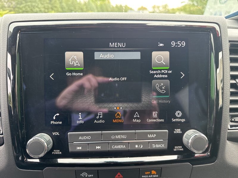 - Radio: SXM/AM/FM/AUX/USB Audio System w/6 Speakers -inc: 9.0" color touch-screen display, wireless Apple CarPlay, Android Auto, Bluetooth hands-free phone system and streaming (audio or text message), voice recognition for audio features, Siri Eyes Free, 1 USB-A and 1 USB-C front ports, steering wheel audio controls, Nissan door to door navigation, NissanConnect services and Wi-Fi hotspot